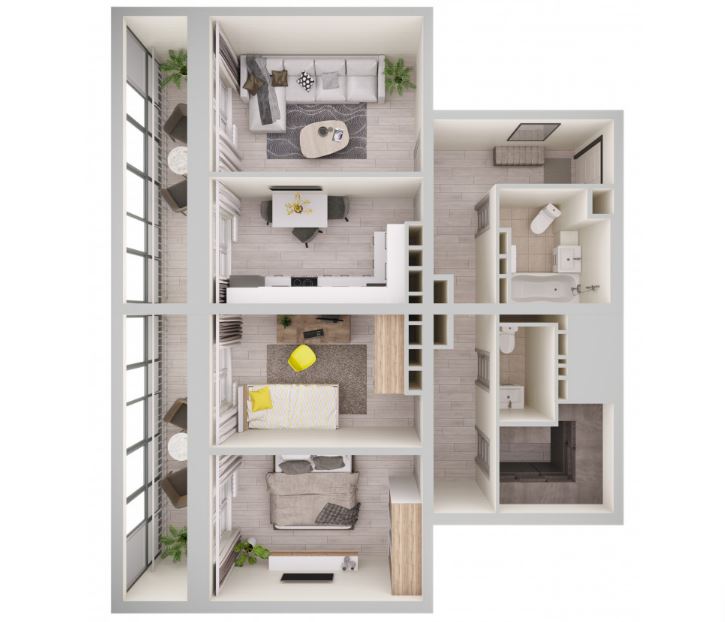 Продуманные эргономичные планировки квартир - ни одного лишнего квадратного метра. Панорамные окна в комнатах, выходящих на лоджии. Современная чистовая отделка квартир по обновленному стандарту отделки. На окнах замки для безопасности детей. Размещение внешнего блока кондиционера на лоджии. Отличные видовые характеристики на все четыре стороны. Предусмотрена установка видеодомофона.