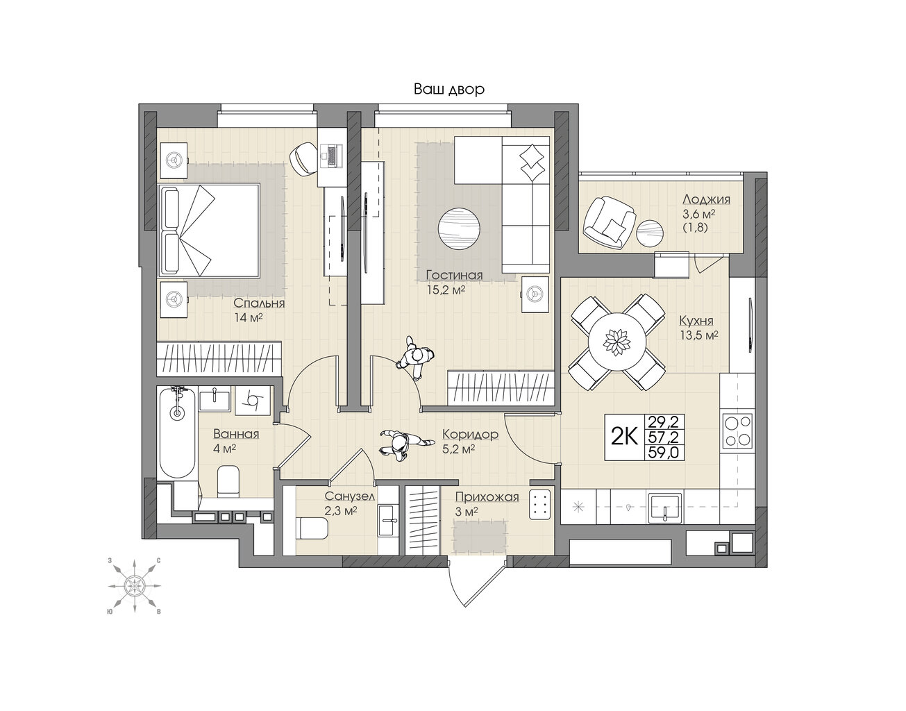 2. Двор, в котором интересно каждому, ведь здесь предусмотрены сценарии отдыха для каждого возраста